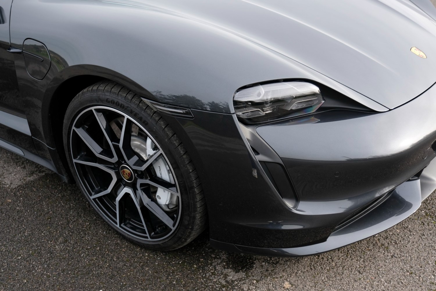 2023 Porsche Taycan with 10902 miles, finished with 21 inch RS Spyder Design wheels, panoramic fixed glass roof and two-tone leather interior, this exceptional electric sports saloon combines cutting edge performance with everyday usability and premium comfort. The Porsche Taycan represents a significant milestone for Porsche as its first fully electric production model, bringing together the brand motorsport heritage with advanced electric architecture and 800 volt technology for rapid charging capability and sustained high performance. This example benefits from air suspension providing exceptional ride comfort and composure, while Power Steering Plus ensures effortless manoeuvrability at lower speeds without compromising precision at pace. The Porsche electric sport sound enhances driver engagement, offering a purposeful character to accompany the impressive acceleration expected from a Taycan. Inside, the cabin reflects the high standards synonymous with Porsche, elevated further by a beautifully specified two tone leather interior, ambient lighting, desirable passenger display and heated front and rear seats with the 4+1 seating configuration. The innovative curved digital instrument cluster incorporates haptic feedback for a modern, tactile user experience, complemented by a head up display projecting key driving information directly into the drivers line of sight. A 22 kw on board AC charger supports efficient home and destination charging, while Park Assist provides reassurance when manoeuvring in tighter environments. Exterior mirrors painted in exterior colour, privacy glass and the striking 21 inch RS Spyder Design wheels complete a confident and athletic presence on the road. This vehicle was last serviced in July 2025 and has covered just 10902miles. It also benefits from a Swissvax application and pack, supporting the preservation of its excellent cosmetic condition. The Taycan offers impressive real-world range, refined long distance capability and the engaging driving dynamics for which Porsche is renowned, making it a compelling choice for those seeking performance and sustainability in equal measure. This is a carefully specified and well-maintained example that reflects our commitment to quality, preparation and transparency.In summary the key highlights of optional extras configured from new over £11,000 are: Two-Tone Leather Interior; Power Steering Plus; Wheel centres with full-colour Porsche crest; Steering Wheel Heating; Electric Charging Cover; Panoramic Roof (fixed); 21-inch RS Spyder Design wheels; Windscreen with Grey Top-Tint; 4+1 Seats; Exterior Mirrors painted in Exterior Colour; Electric folding exterior mirrors; Porsche Electric Sport Sound; Passenger Display; ParkAssist incl. Surround View; 22kW On-board AC charger; 150kW On-board DC-DC converter; Head-Up Display; Side Window Trims in Black (High-Gloss); Ambient Lighting; Privacy Glass; Swissvax Application and Pack